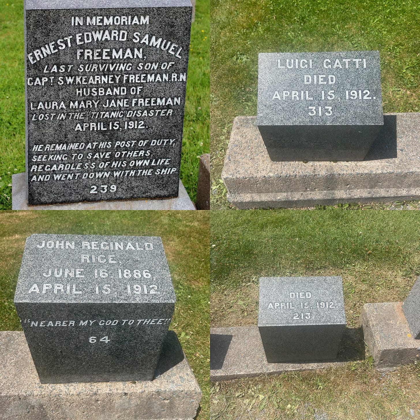 Others floating, frozen solid, dressed in evening attire with lifejackets wrapped around them were hauled off the Atlantic’s surface by cable ships and other passenger liners for many months. They were brought to Halifax for burial.