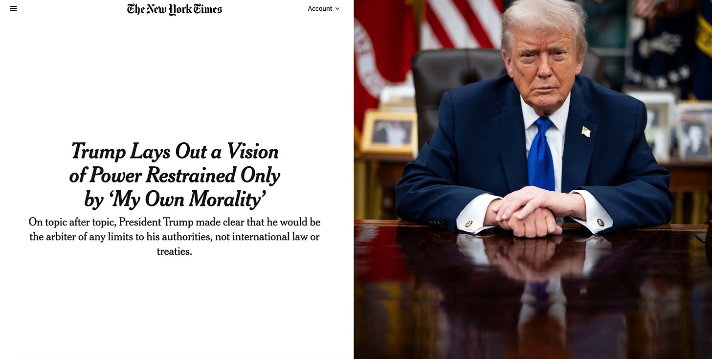 Asked in a wide-ranging interview if there were any limits on his global powers, Trump said: