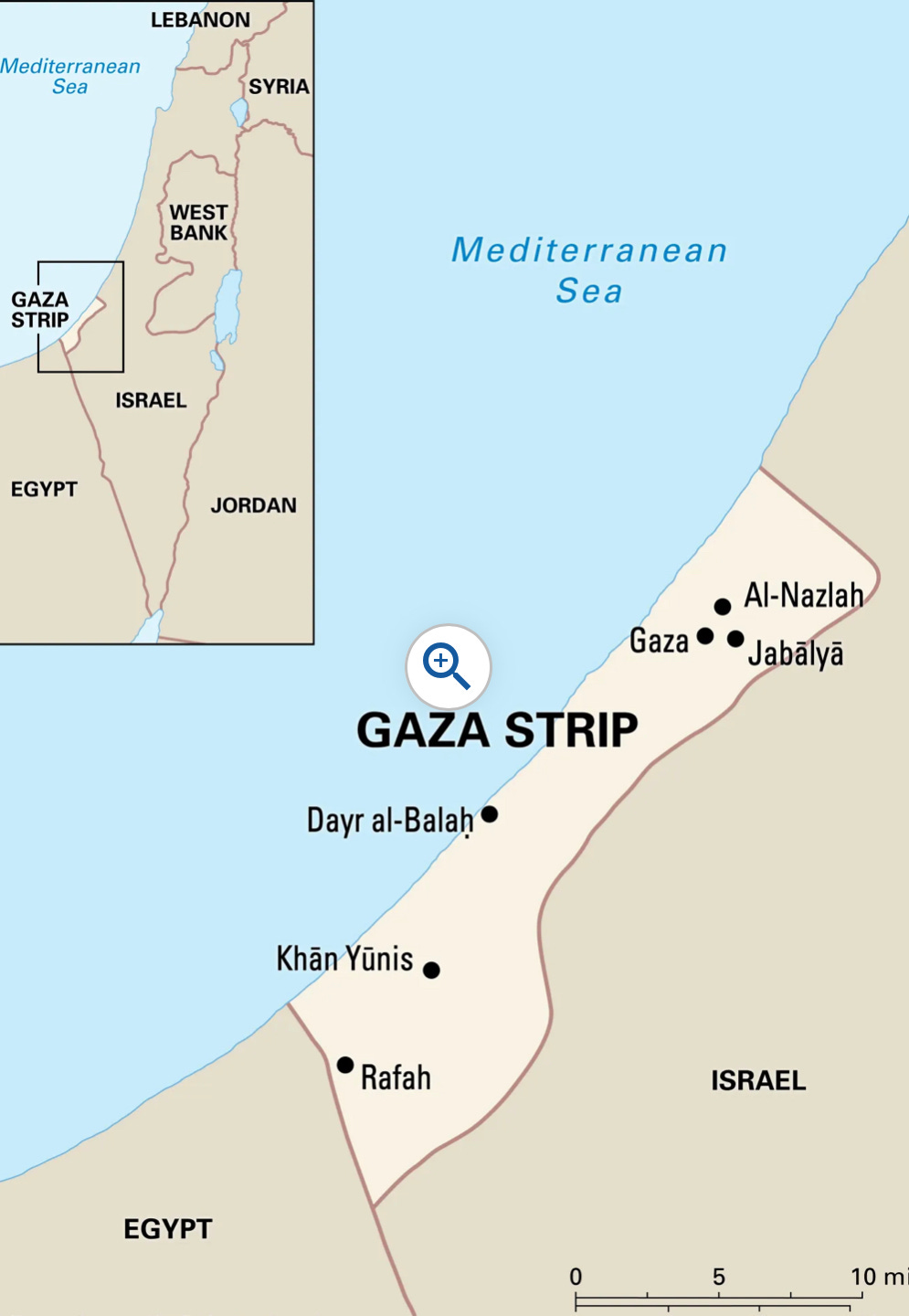 The Israeli military has ordered the evacuation of the Gaza Strip and advised the civilian population to move south. Here is the map of Gaza: