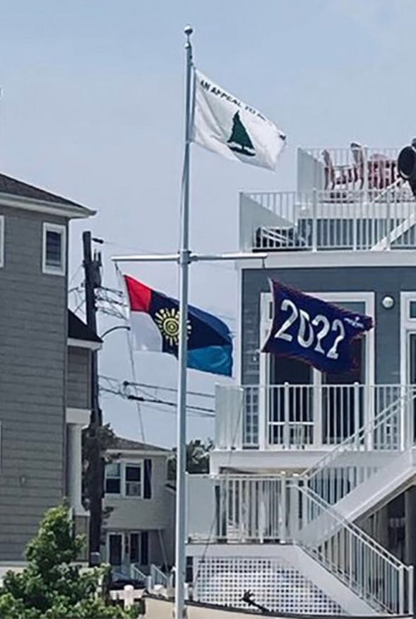 Samuel Alito has made an assertion and a declaration that is plain as day. Samuel Alito stands with the January 6 criminals and the MAGA cause. They tried to tear down the American flag from the top of the proverbial mast, which is what Alito literally did. Upon the soil and territories of the United States of America there should only be one flag flying from the top of the mast, and that is the American flag, not a cheap knock-off of a historic relic co-opted as a symbol of fascists, conspiracy theorists, MAGA and Trump.