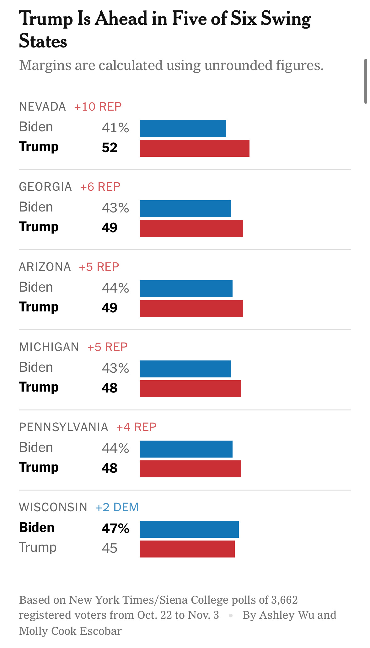 Here are the polling numbers from the New York Times/Siena poll today: