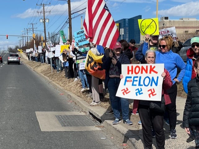 Special thanks to The Warning community member Peter Wood for sharing this photo from a Tesla protest yesterday in Rockville, MD, with more than 200 people: