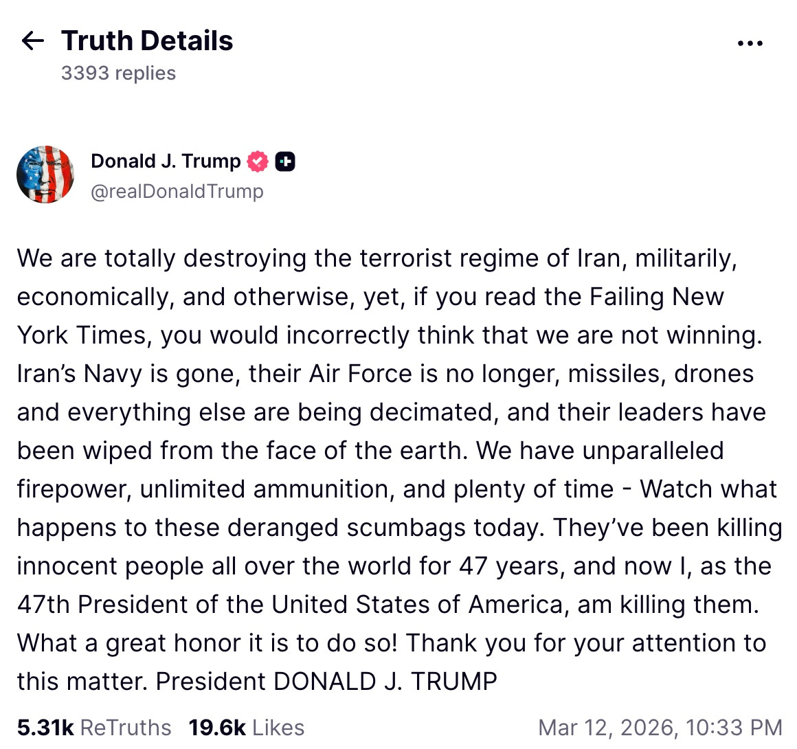 Trump’s great danger to every American has always lied in his ability to start a war, which was always the last stop for his malignant narcissism.