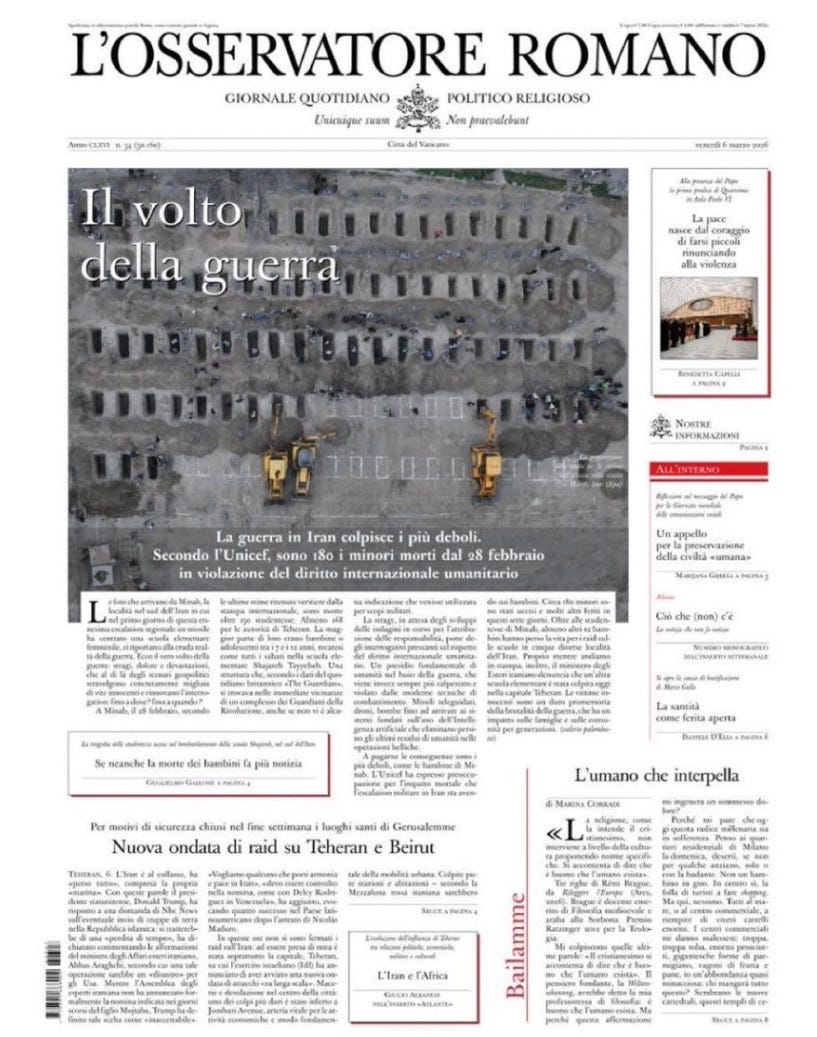 Among Iranian civilian casualties are 168 school children killed by an American missile.