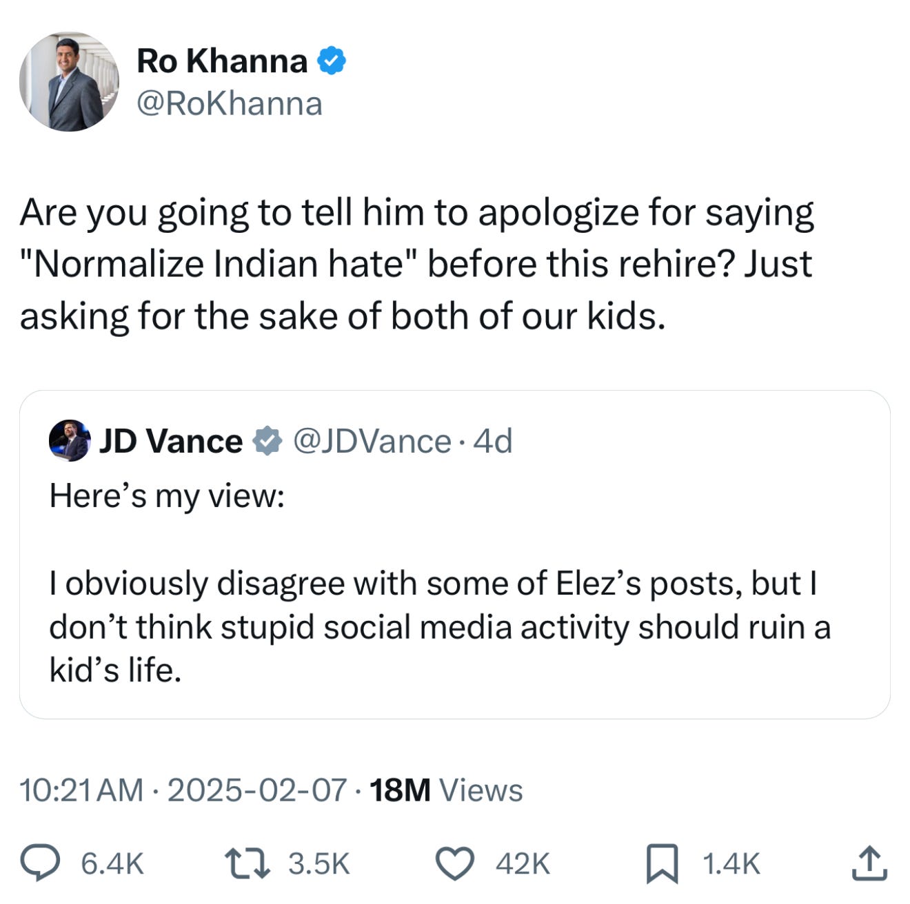 Ro Khanna hit JD Vance in his sweet spot.