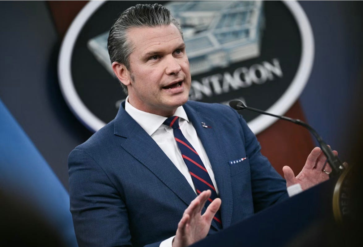 Pete Hegseth claims a title for himself that has been conjured by a man who has no power to change the law by whim, or grant titles that don’t exist.