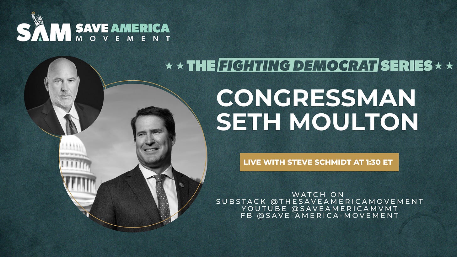 I hope you’ll join Congressman Seth Moulton and me TODAY at 1:30 pm ET on Substack Live for our ongoing The Save America Movement conversation series with “Fighting Democrats.”