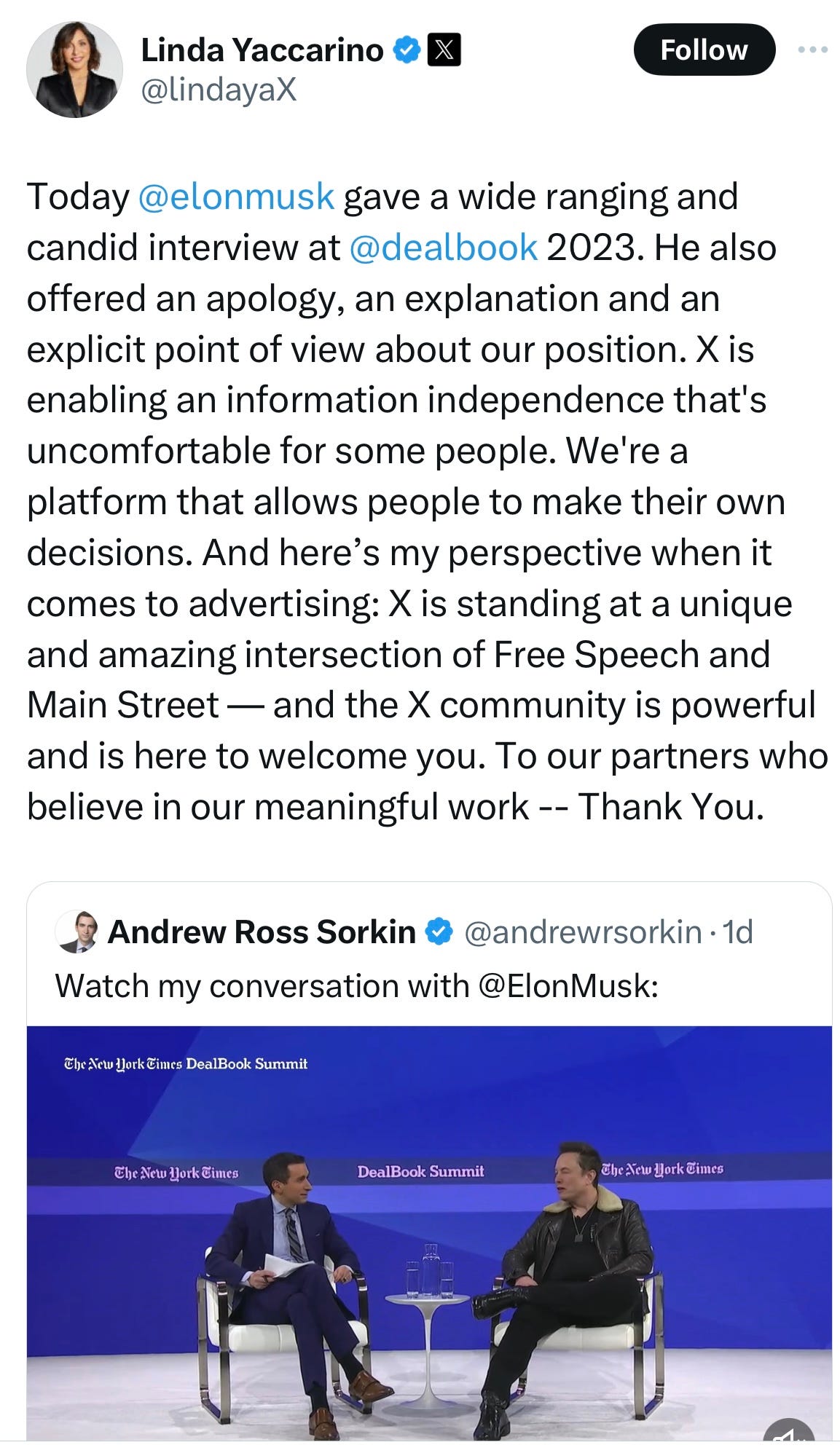 What he has created with X is a digital Bavaria circa 1938. It is a square filled with menace, evil and loads of Nazis. It serves no purpose beyond the wealth of its owners, which include the Saudis and other foreign interests that love seeing the constant chaos wrought by X, if not the enduring love story between Musk’s disorders and Linda Yaccarino’s abject craveness.