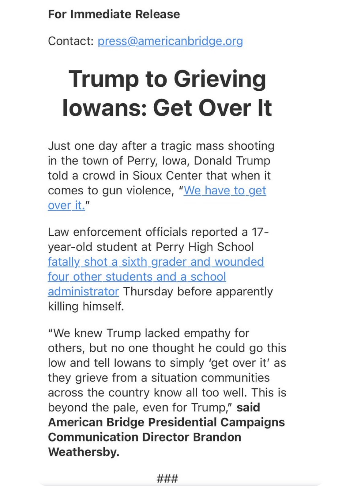 American Bridge, the politically incompetent and impotent Democratic Super PAC, lost and ineffective as ever, released a lukewarm banality to fight back: