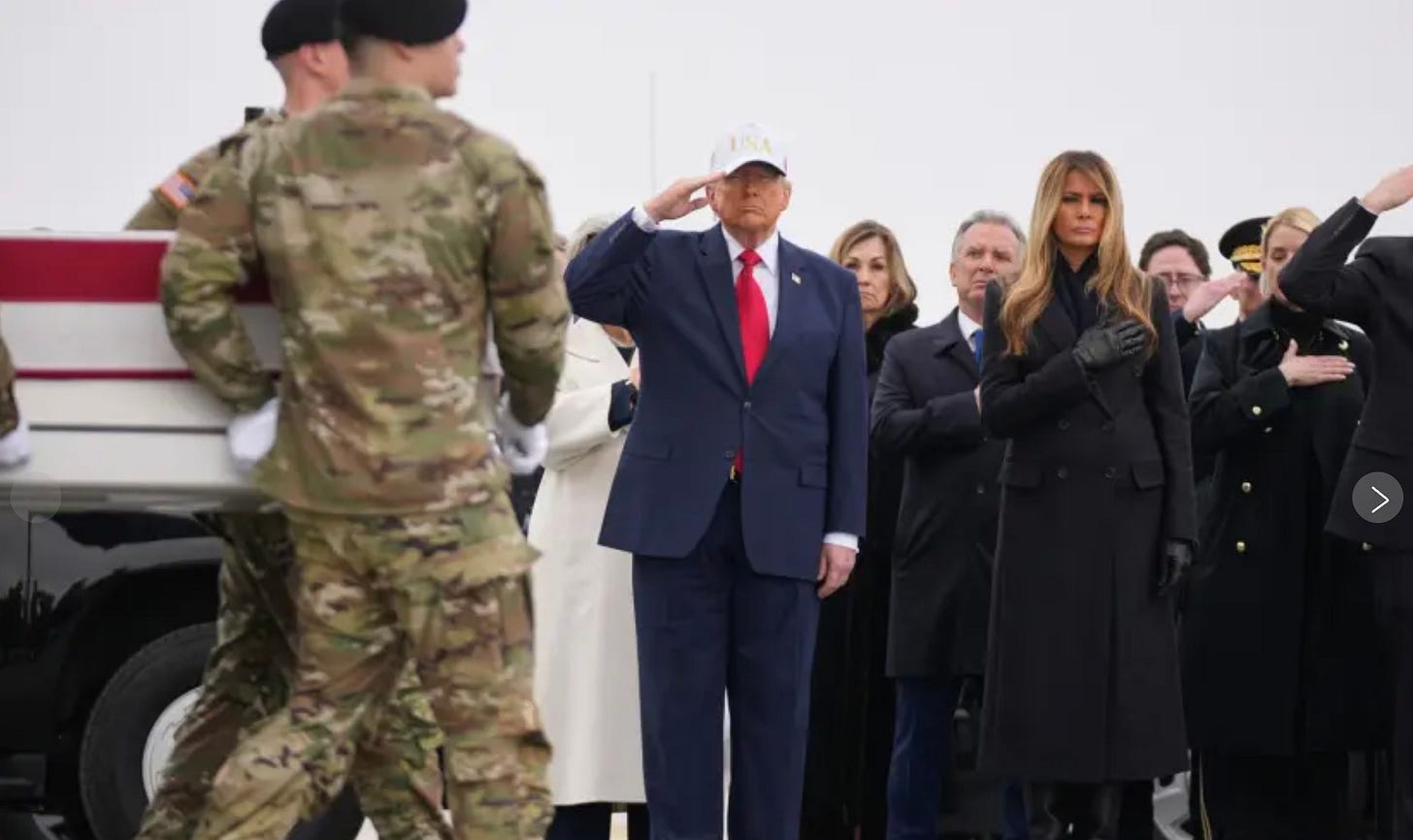 Americans are coming home in boxes, and Donald Trump can’t be bothered to remove his hat.