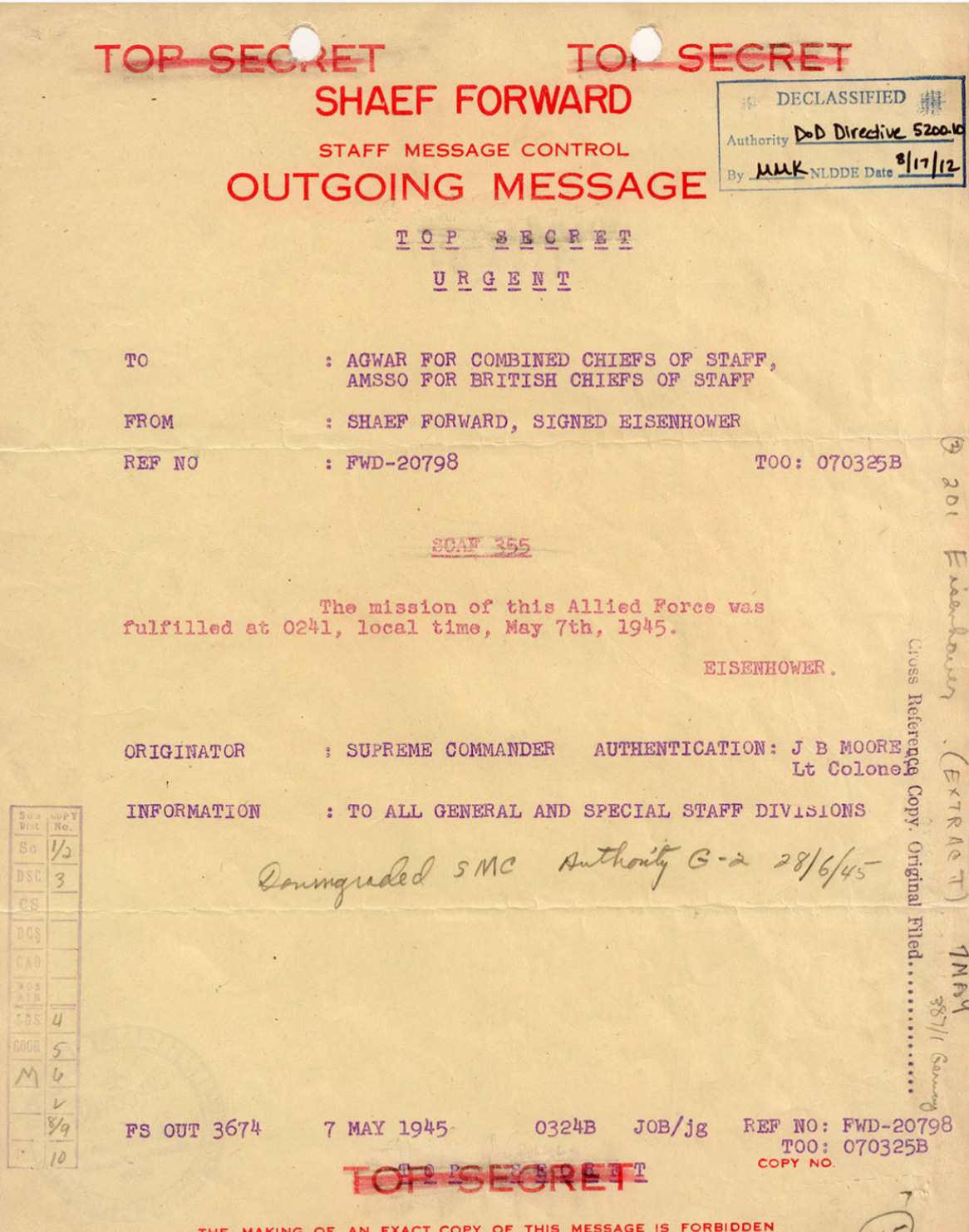 Here is the cable that was sent by Eisenhower that records the end: