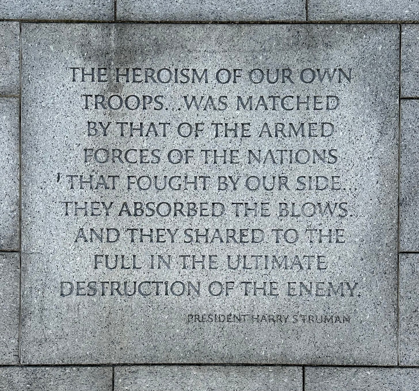 The MAGA Congress have strangled Ukraine and the ability of a brave people to defend their nation. Donald Trump has invited an attack on our allies with an open invitation to Vladimir Putin to invade them. This position cannot be reconciled with these words from President Harry Truman, found at the World War II Memorial that remembers something eternal and worth remembering: