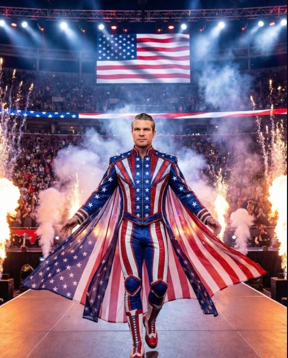 It’s supposed to make Hegseth look strong, but it makes me wonder if Liberace had a secret love child.