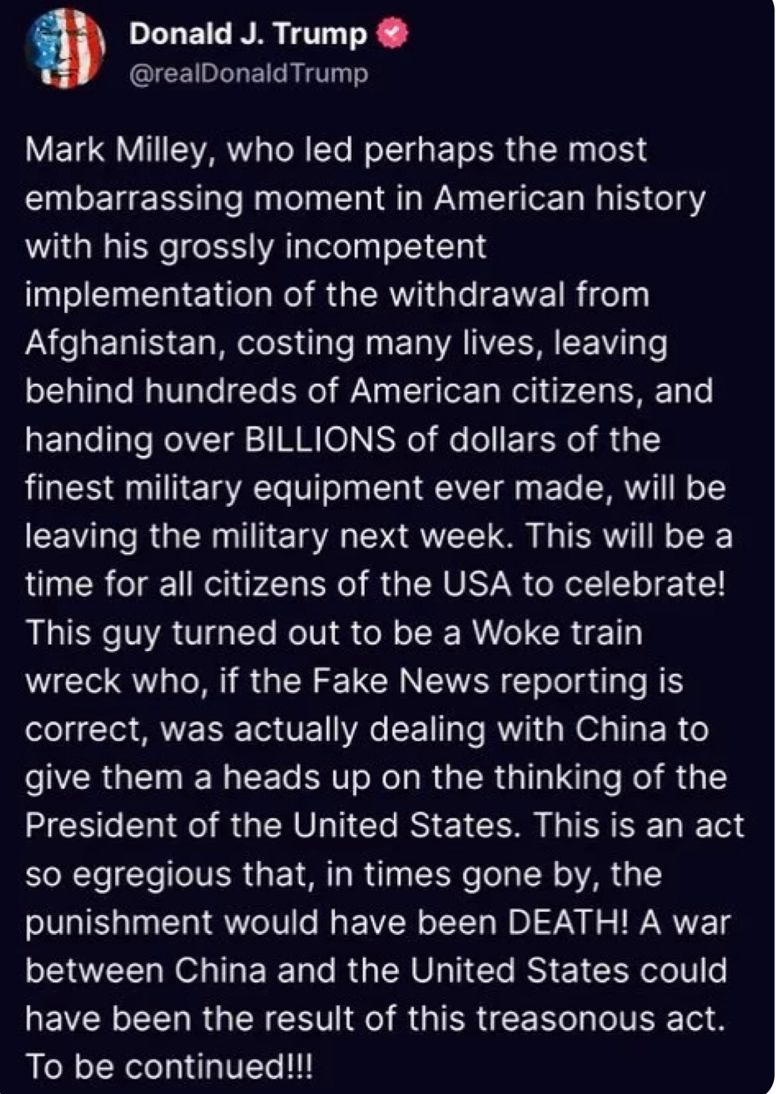 This was the undelivered letter of resignation written by the Chairman of the Joint Chiefs of Staff Mark Milley. Pay attention to the words that were put to paper by America’s highest ranking military officer: