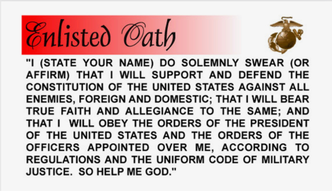 Below is the oath that an enlisted United States Marine takes in service of their country: