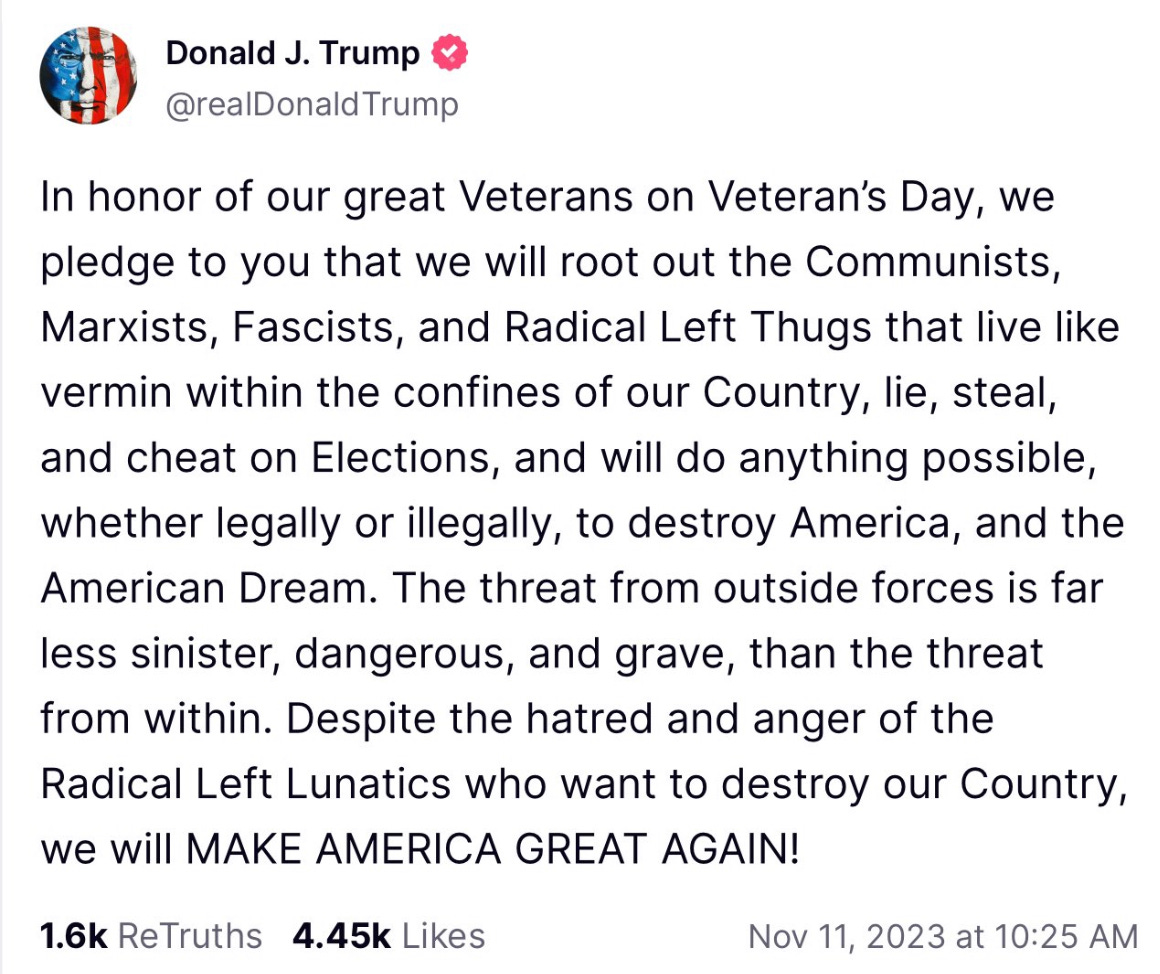 Steve, your diction is more than eloquent! Trump’s V-day post made me sick. Thanks for calling it out. Still, there are many in the military who support him. Hard to figure.