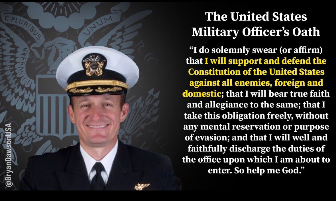 Below is the oath taken by an officer of the United States Armed Forces. It is the same oath taken by commissioned officers appointed by the president of the United States, who serve on the White House staff: